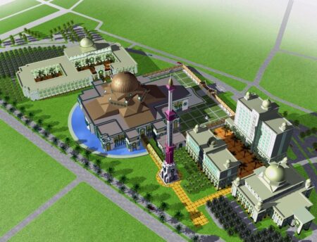 إنشاء مركز جاكرتا للتنمية الإسلامية باعتباره معلمًا بارزًا بسمات ضخمة ، مع فارق بسيط في الإسلام حيث يصبح المسجد مركزًا