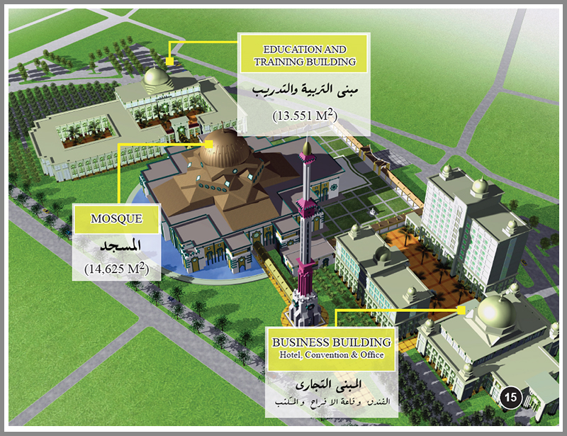 تم تطوير مركز جاكرتا الإسلامي بناءً على خطة رئيسية تتكون من ثلاثة مجمعات هي: